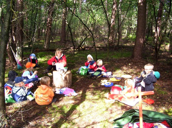 Grupos de crianças na floresta